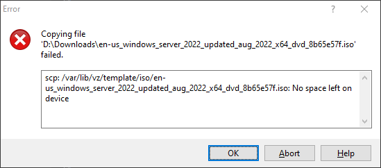 Why might you get a disk upload error? If you use the default ISO storage location, you may receive the error on screen when uploading a large iso file operating system installations such as Windows Server 2022.
