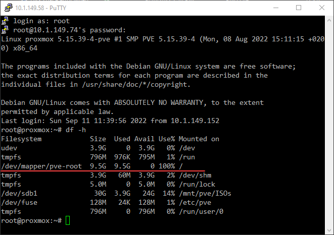 Proxmox VE ISO files storage disk space error