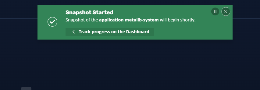 The snapshot backup process is viewable from the dashboard.