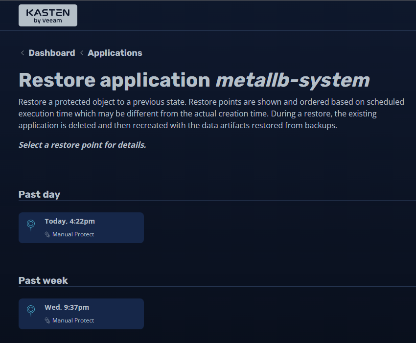 Below, I have chosen to create a backup of my MetalLB application. You can review the options presented here.