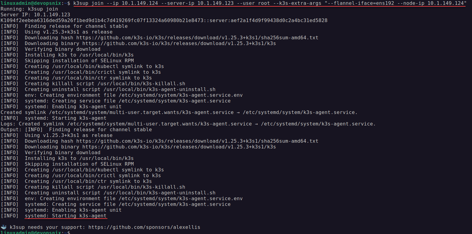 k3sup join --ip 10.1.149.125 --server-ip 10.1.149.123 --user root --k3s-extra-args "--flannel-iface=ens192 --node-ip 10.1.149.125"