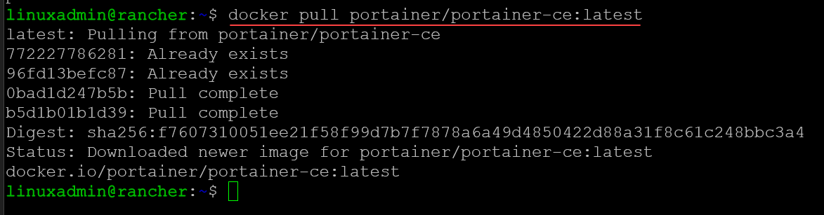 Now, we need to pull the latest portainer container. We can use the command: