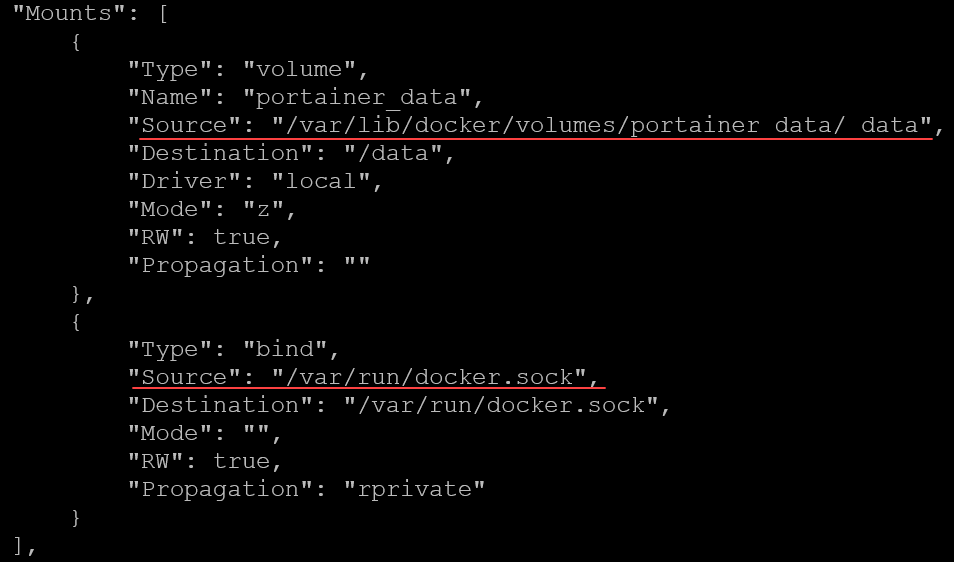 As you can see below, the source mounts: Docker.sock v portainer_data data portainer. The portainer_data is mounted from the path: