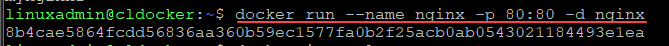 Finally, we run our container from the loaded image. As you can see below, I changed the host port since I didn’t have port 80 available on the destination host.