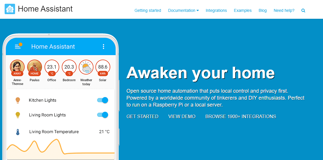Home Assistant is an open-source tool to provide home automation. It has a huge community following and is a service that many run on a Raspberry Pi device configuration or docker container setup.
