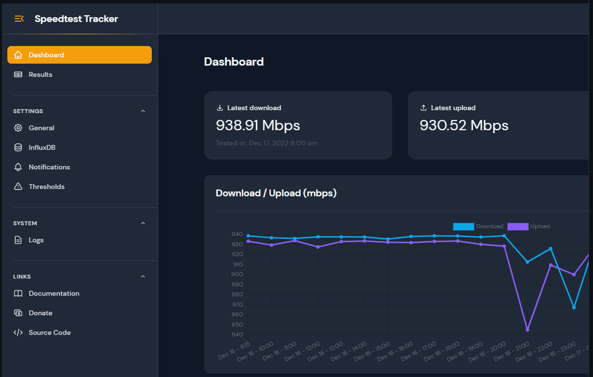 You can also run Docker containers on your Synology NAS to monitor your Internet connectivity. There is a great project I have found that works really great and has documented steps to run on your Synology NAS device. It is called the Speedtest tracker project: Installation – Speedtest Tra cker (speedtest-tracker.dev). You can run a speed test any time you want, or have these scheduled.