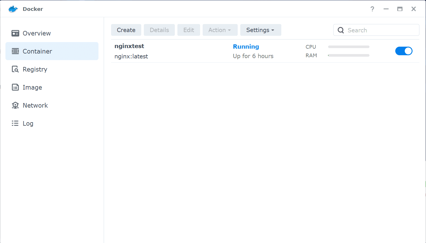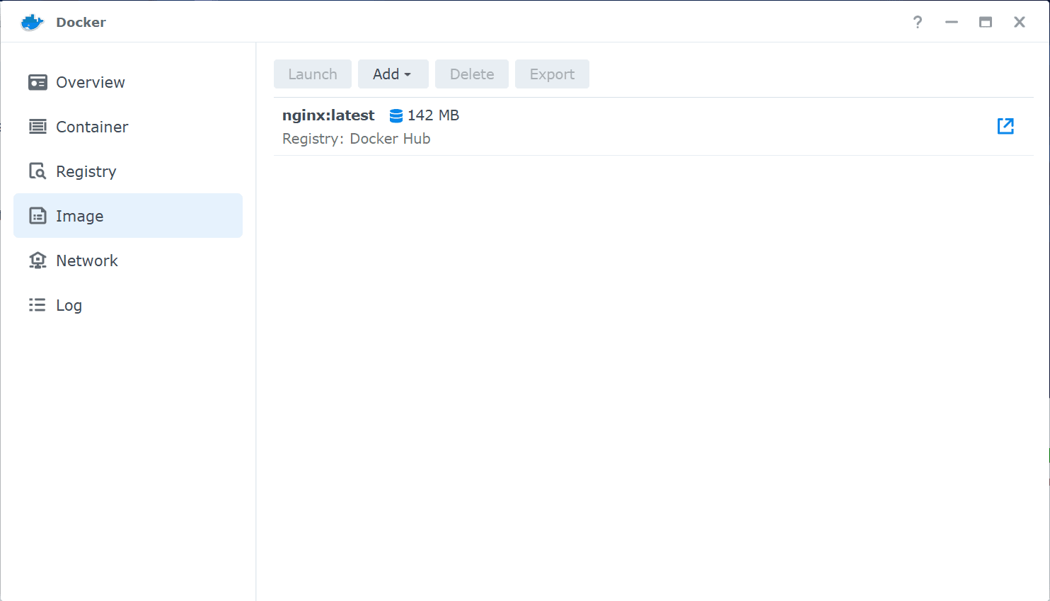 Viewing images from the Docker Synology app. This allows you to see which images you have already downloaded and manage these from here.