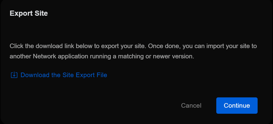 The export feature will come in handy if there are any issues with the migration process and you need to revert to the old controller. You can back up the old controller by exporting the site using the Export Site function.