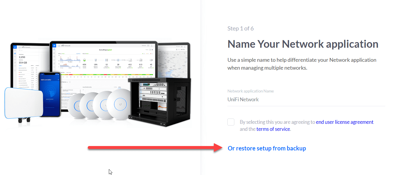 After installation, launch the Unifi Controller setup wizard to configure the controller. During the initial setup of the new Unifi Controller, you can choose to restore your backup file on the new Unifi controller running in the Docker container.