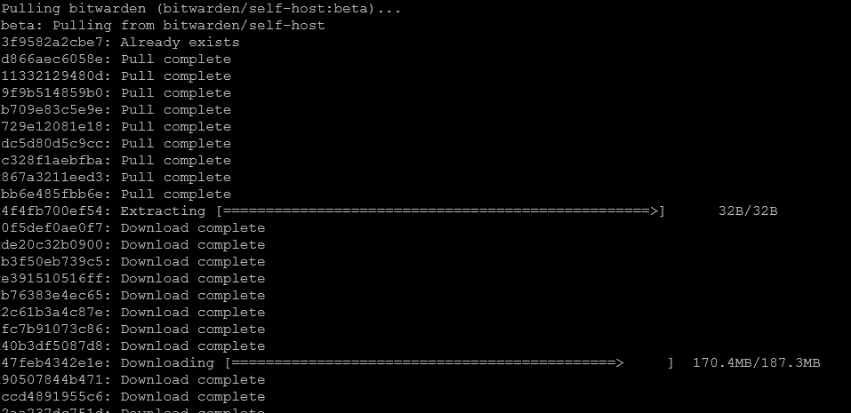 docker run -d --name bitwarden -v /$(pwd)/bwdata/:/etc/bitwarden -p 80:8080 --env-file settings.env bitwarden/self-host:beta