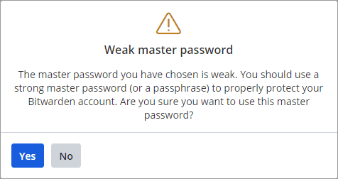 If you create a weak password, you will get the warning below.