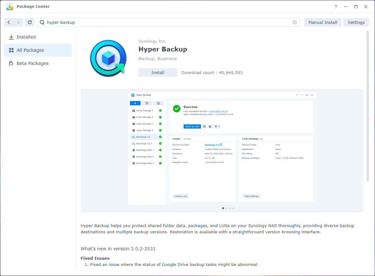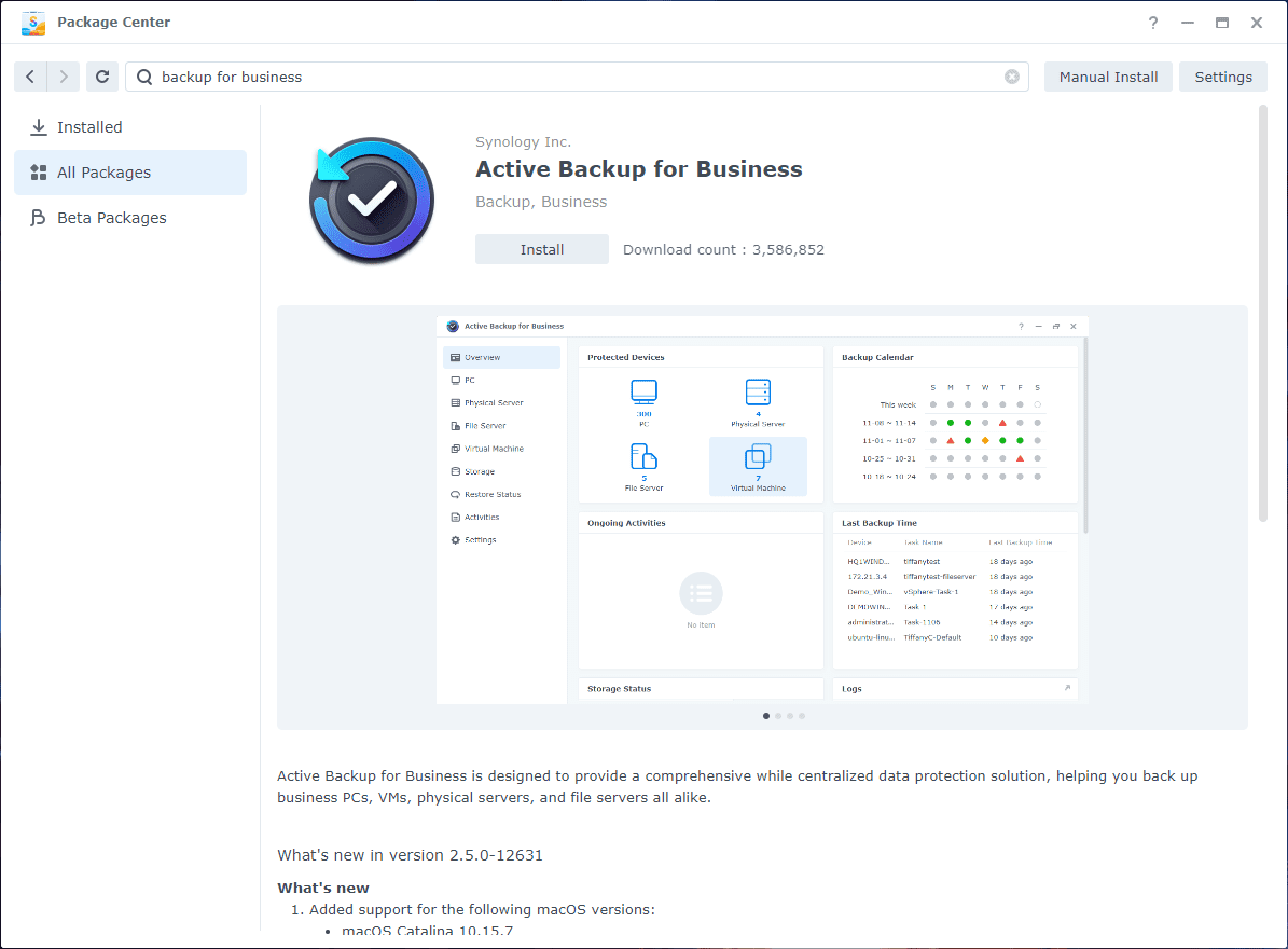 In my opinion, this is one of the most valuable apps that you get for free with your Synology NAS. Most enterprise backup solutions cost thousands of dollars for licensing each year. If you own a Synology NAS device, you get one for free.