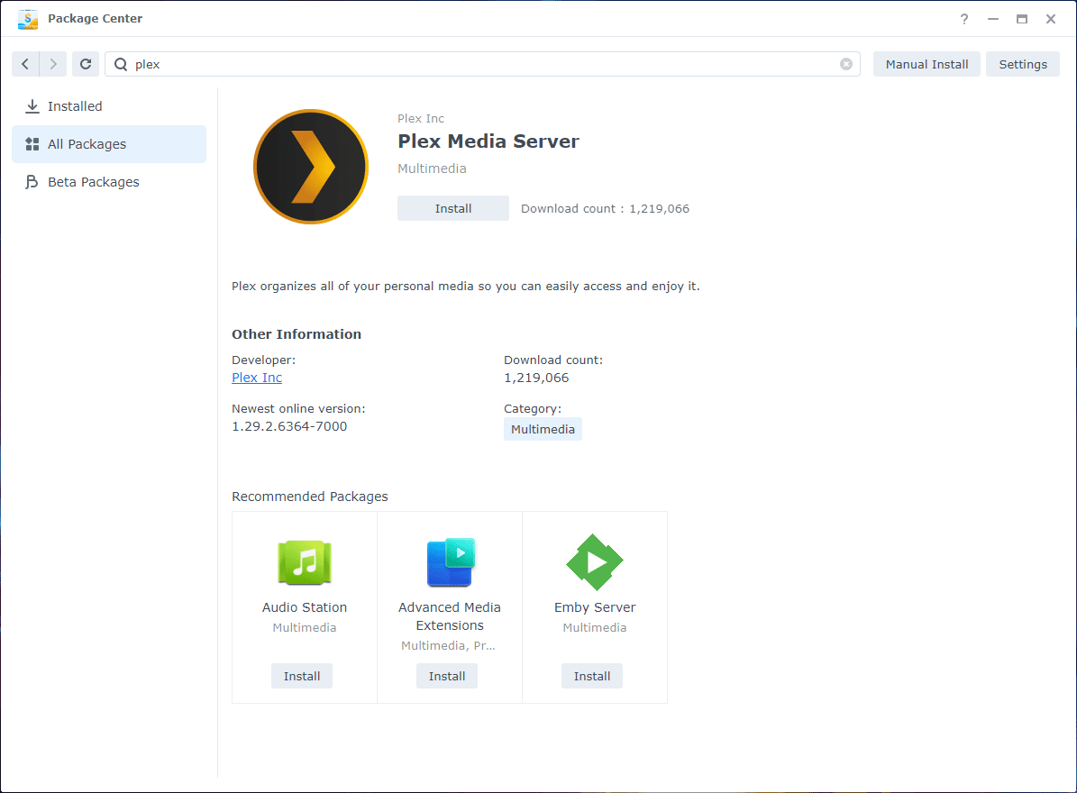 We can’t go without mentioning Plex media server for Synology. While it is a third-party solution, it is well-known in the community to be a great solution for self-hosting your media.