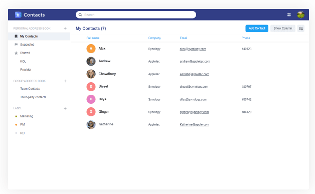 If you are looking for an address book type app, Synology Contacts is that. It can manage and sync your contacts across your devices. With it, you can import and export as well as merge and edit contact information. You can also share your contacts with others.