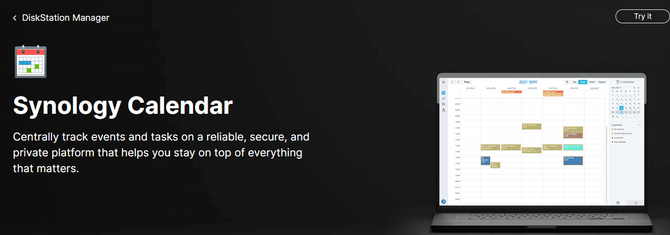 The Synology Calendar is a scheduling app that can allow you the tools you need to manage your events. This includes creating and managing tasks and events. It has a good interface and you can also add multiple calendars.