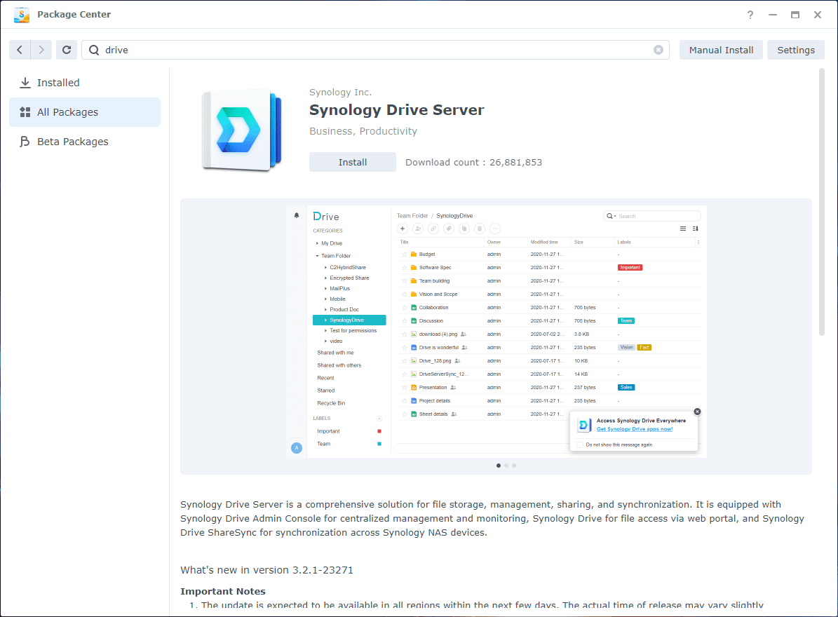 Most of us have heard about Google Drive or Microsoft OneDrive. Synology Drive allows you to provide “cloud” storage for yourself using your Synology NAS device and Synology Drive Server is the app that makes this possible.