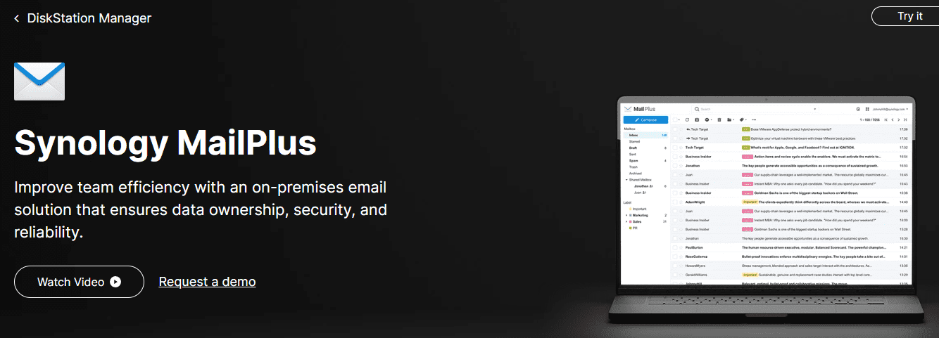 You can install Synology MailPlus on your NAS and have a way to access a mailserver easily. Installing and configuring a mail server is often not for the faint of heart. If you are like me, I hate email or managing email more specifically.