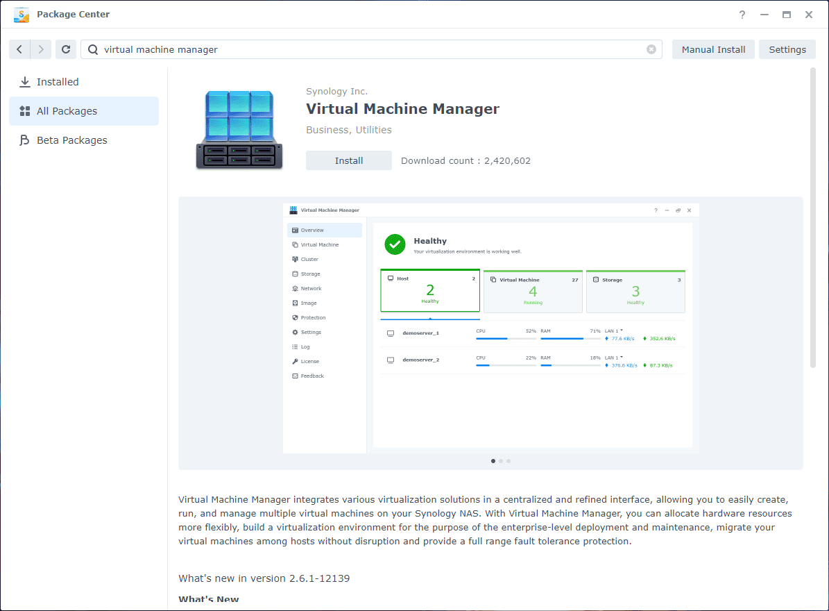 You may not realize but with Synology NAS you can run virtual machines. You can spin up Windows and Linux VMs and manage these through the Virtual Machine Manager interface.