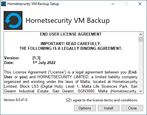 The installation process for HornetSecurity VM Backup is straightforward and easy. The process is a simple “next, next, finish.”