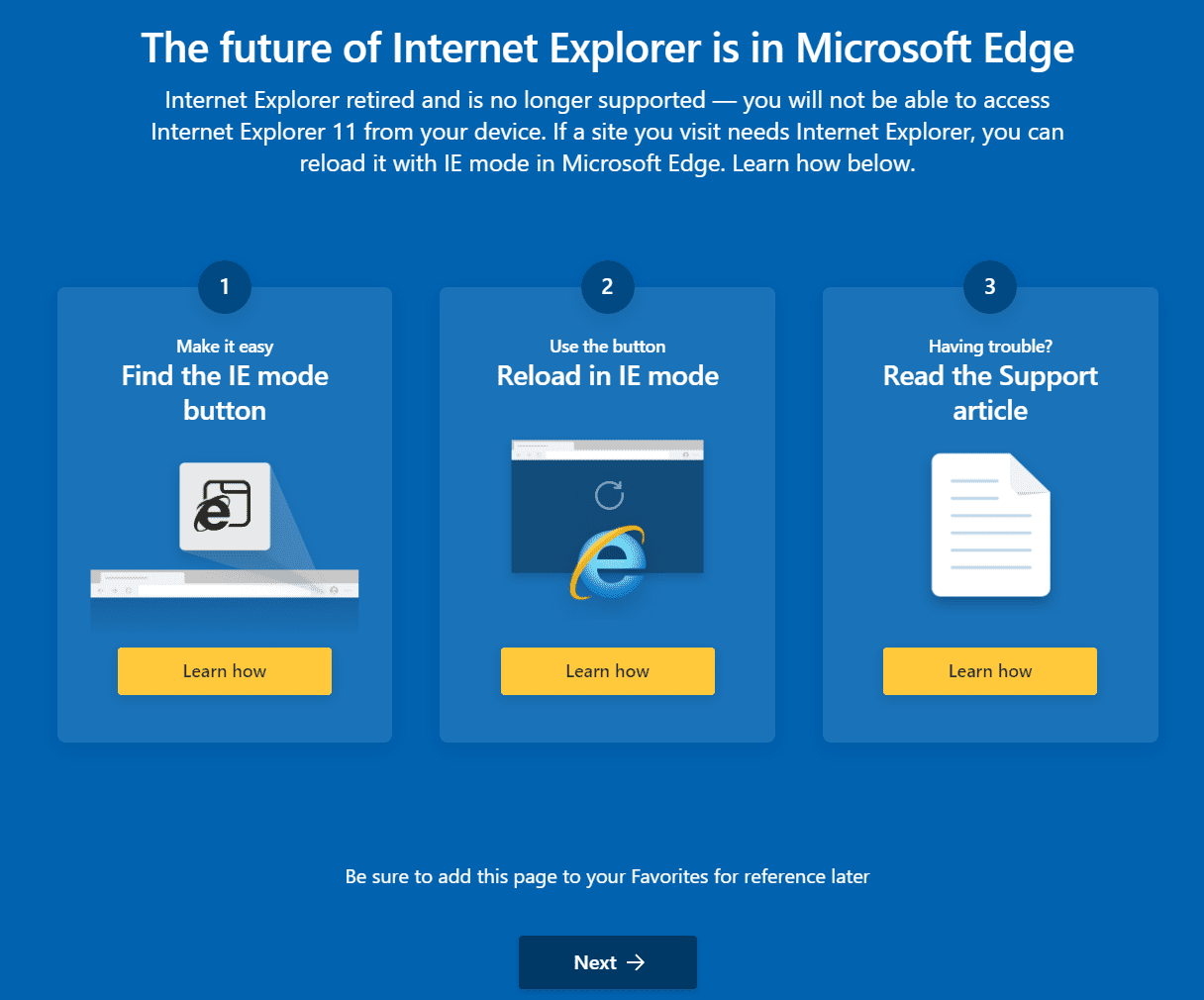 - Internet Explorer 11 is now totally deprecated from Microsoft