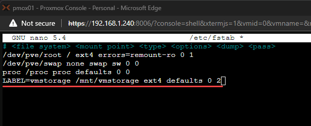 I think there’s a typo: “mkfs.ext4 -L vmstorage /dev/nvmeOn1” -> mkfs.ext4 -L vmstorage /dev/nvmeOn1p1