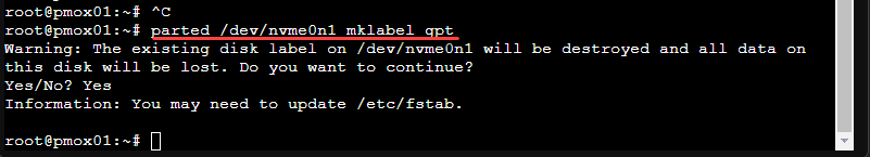 parted /dev/nvme0n1 mklabel gpt