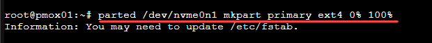 parted /dev/nvme0n1 mkpart primary ext4 0% 100%