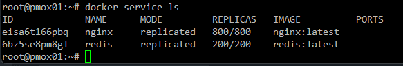 Below is an example of me testing a couple of containers on a single VM. As you can see below, I have spun up 800 nginx containers and 200 redis containers. However, I settled on just a single application container in the final test. So, I spun up 1000 containers on one host (nginx) and 1000 on another (redis), until I reached 13 VMs running 13000 containers.