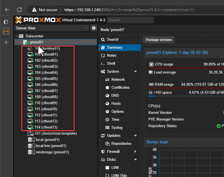 One of the cool little experiments in the home lab recently was seeing just how many Docker containers could run on a single physical Proxmox host, hosting a number of Docker container hosts. I could easily scale containers up to 1000 in each virtual machine using virtual machines and Docker Swarm. Let’s look at Proxmox Docker container host monster :). First though, let’s go through some basics of running Docker containers on Proxmox. You can skip directly to the section where I run 13000 containers in the table of contents.