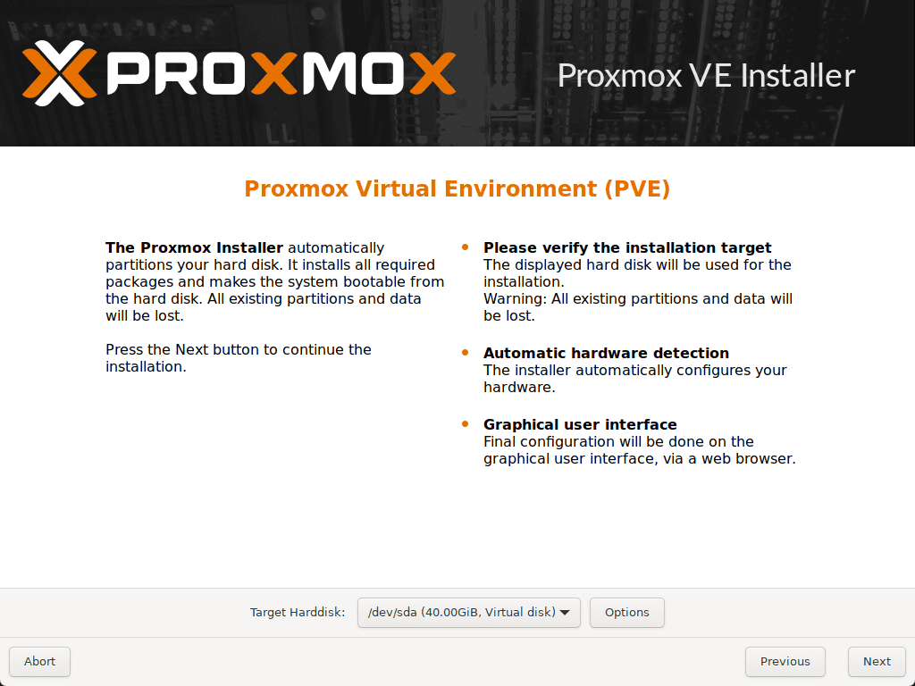 Below are screenshots of installing the latest version of Proxmox at the time of writing.
