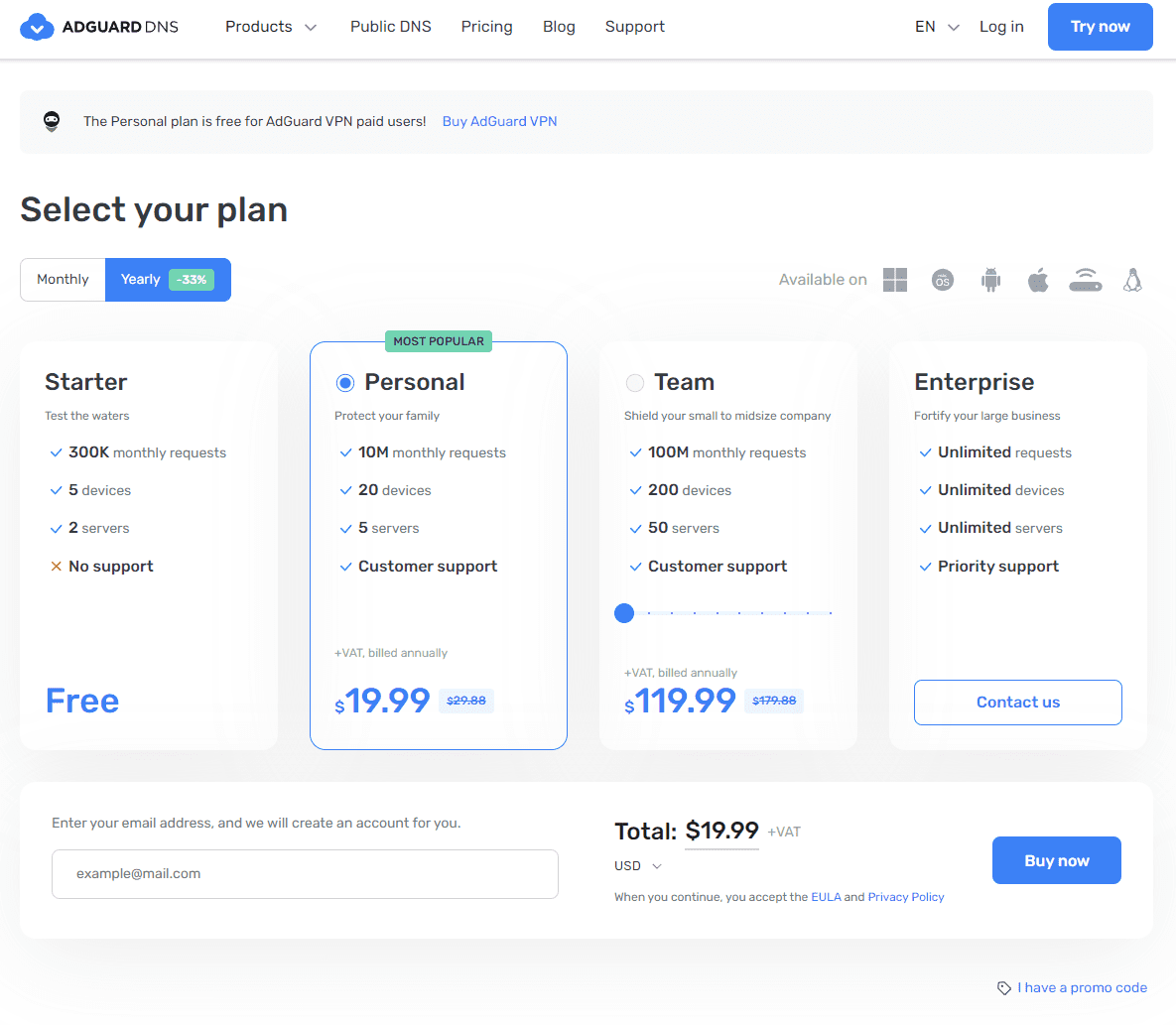 One exciting feature of Adguard is the ability to set up a personal Adguard DNS server. This private DNS server gives you control over the DNS filtering rules applied to all the devices connected in your network. You can easily block unwanted sites or alter the DNS filtering rules to suit your needs. You can self-host Adguard protection using Adguard Home. There is also a Personal subscription level to the Adguard SaaS service.
