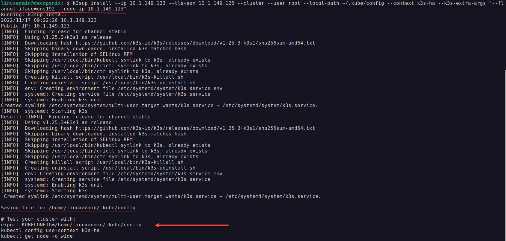 See how to use K3sup here: K3sup – automated K3s Kubernetes cluster install.