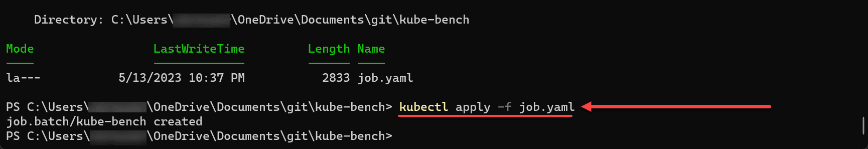 You can run kube-bench directly from the command line, but it’s often more convenient to run kube-bench as a Kubernetes job. Running kube-bench inside a Kubernetes job allows for a more flexible job run and implementation in the environment.