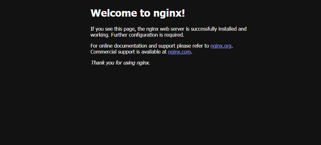 I installed a simple Nginx application and set the service to ClusterIP. The Ingress depends on the configured service being set as a ClusterIP, since the external IP address will come from the load balancer that is servicing Traefik.