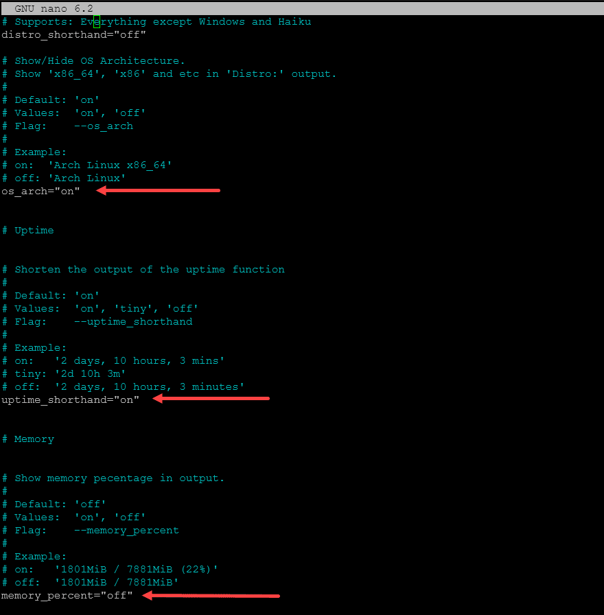 Info: You can modify the print_info() function to choose which system information to display and in what order. Each piece of information is represented by a function that prints it. For instance, info “OS” distro will print the operating system. Commenting out a line will prevent that information from being displayed. There are other command line flags that can be used as well such as for custom images.