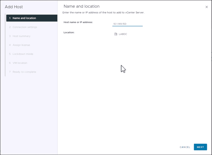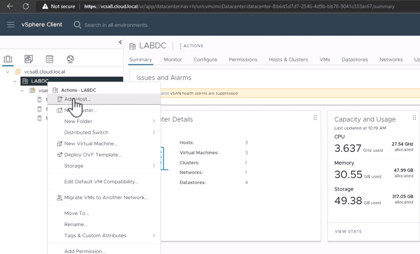 - Starting the Add Host Wizard in vSphere Client to Add to vCenter Server: In the vSphere Client, right-click on your datacenter or cluster and select Add Host.