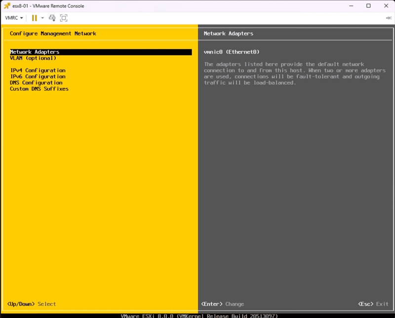 Whenever you make changes to your management network configuration, it’s crucial to restart the management network to apply the changes. This can be done from the DCUI by selecting the “Restart Management Network” option.