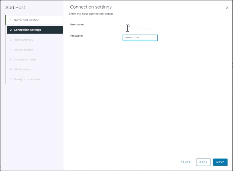 Enter the username and password to connect to your ESXi host. This is generally your root user.