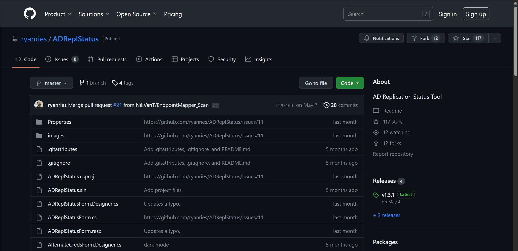 You can visit the project link here: GitHub – ryanries/ADReplStatus: AD Replication Status Tool.