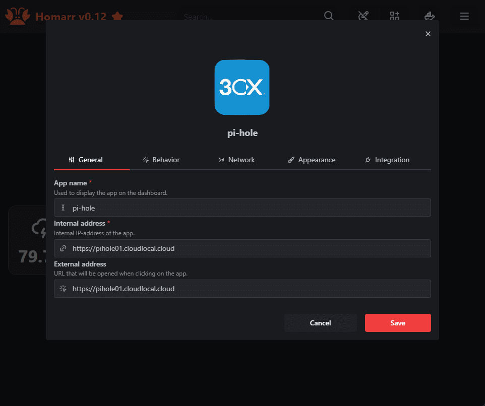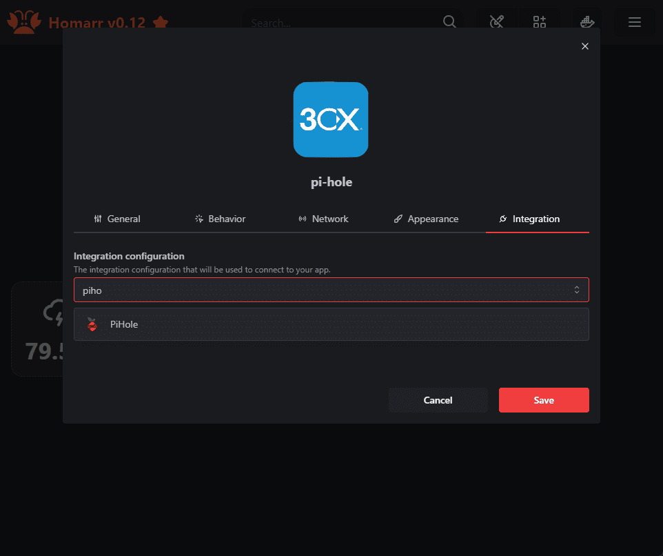 Below, I am starting to add an application integration. Here I am connecting to Pi-Hole.