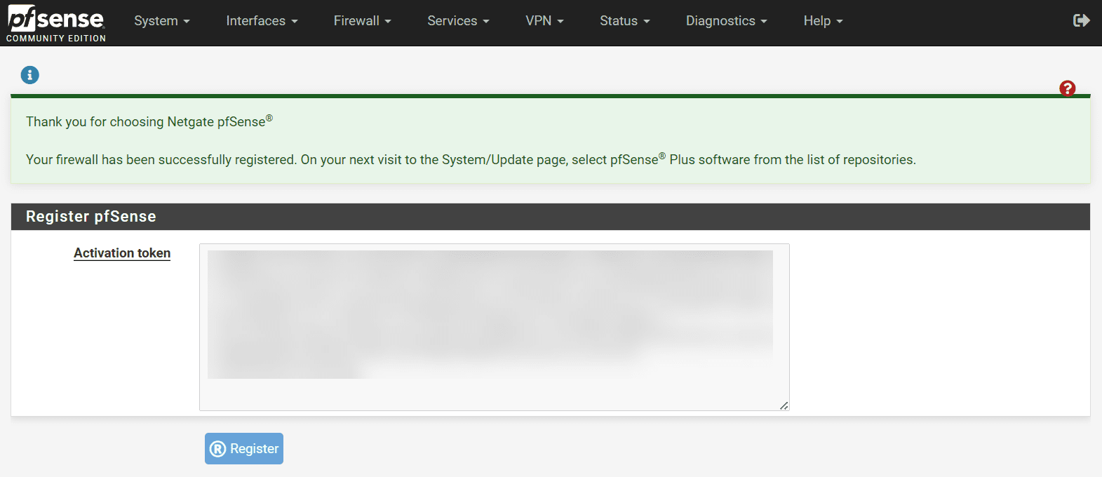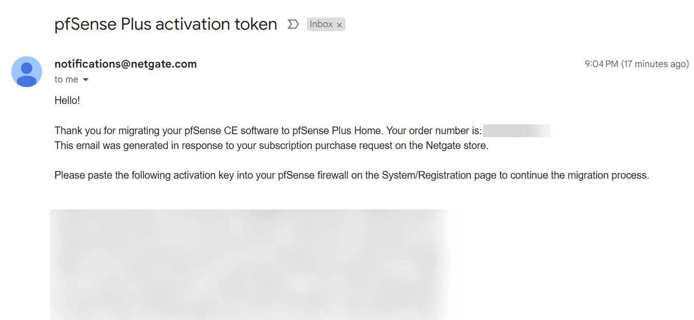 You will receive an activation token from Netgate. You use this on the System > Registration menu as directed by the email.