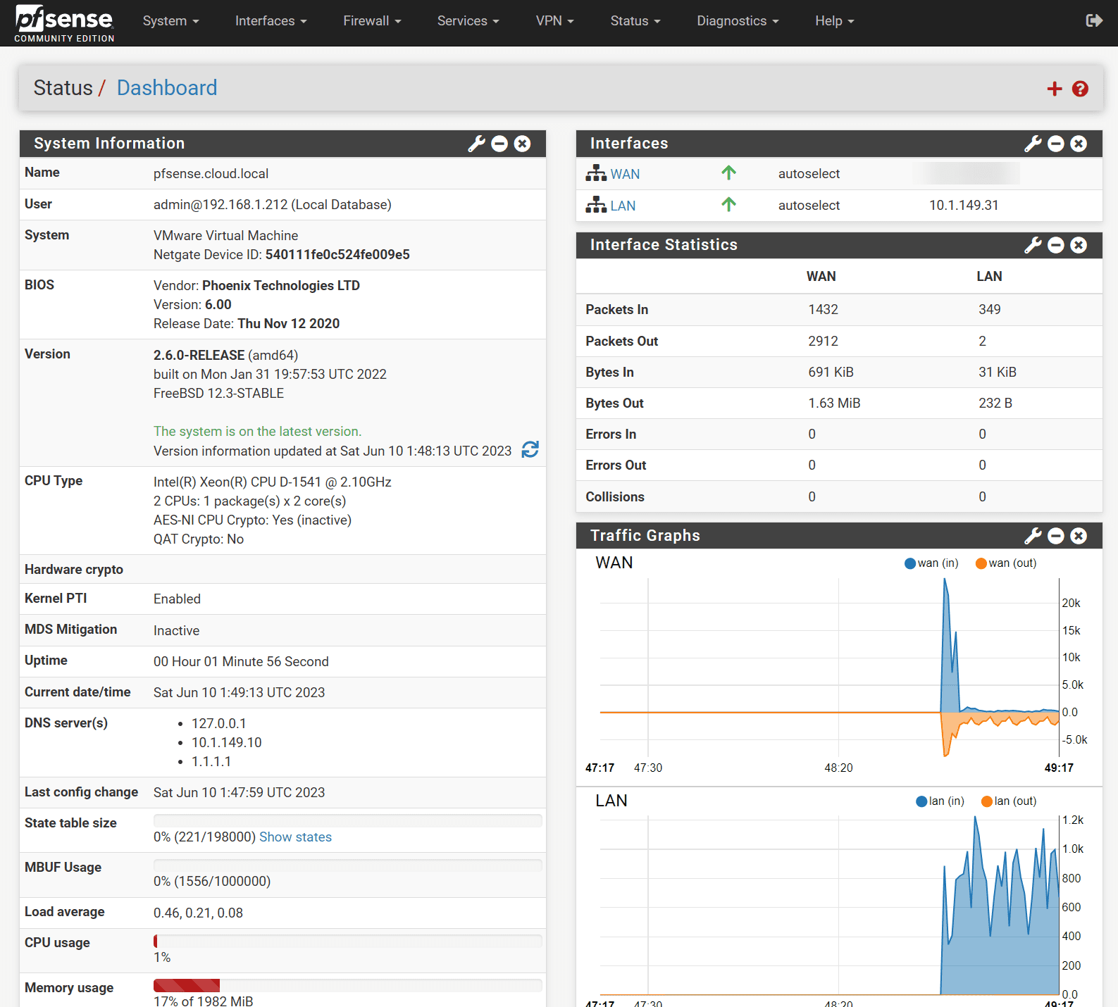 And we arrive at the pfSense+ dashboard!