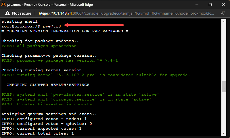After 2-3 minutes in the home lab, my Proxmox VE 7.4 server successfully upgraded to Proxmox VE 8.0.