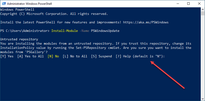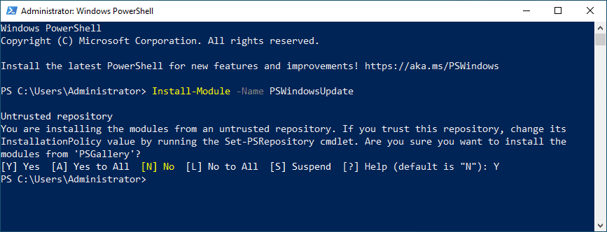 Type “Y” to trust the PSGallery repository.