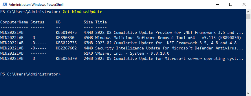 Upon successful import of the PSWindowsUpdate module, you can quickly check for available updates using the command: