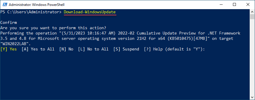 With the updates downloaded, you can install them using the ‘Install-WindowsUpdate‘ command. This command installs all downloaded updates, following which your system might need to reboot.