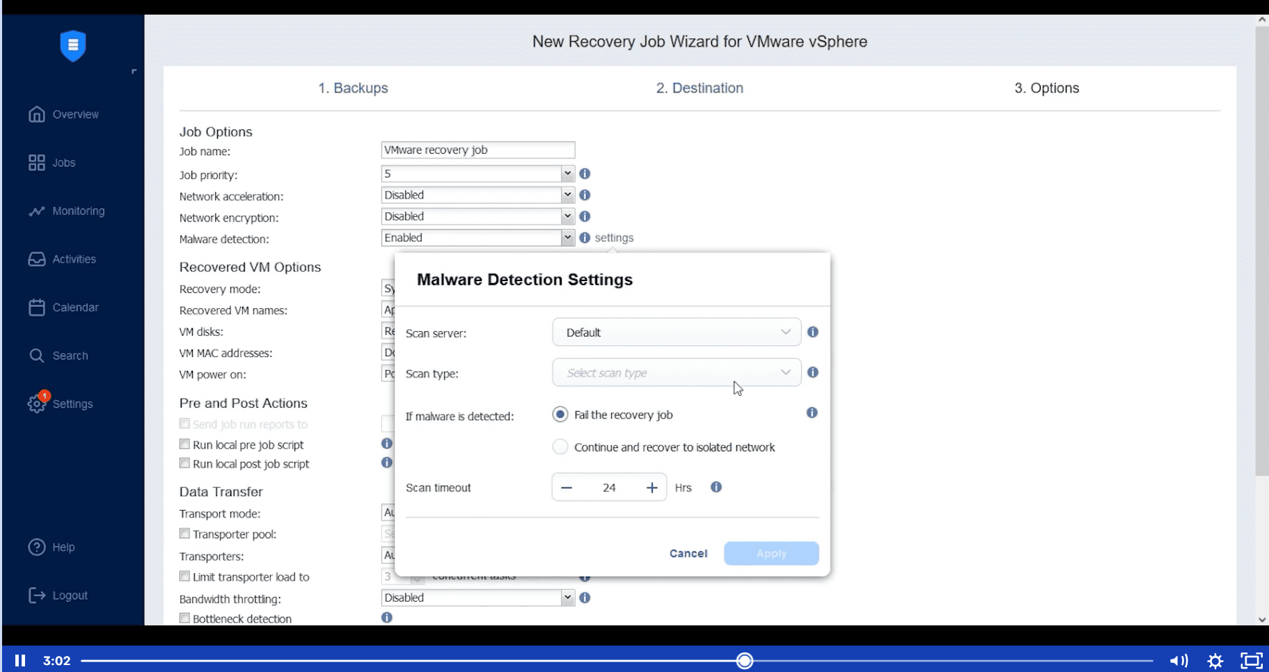 The new Backup Malware Scan integrates with leading name brand antivirus and malware software. More and more compliance regulations are requiring the ability to run malware scans against backups to make sure these are clean.