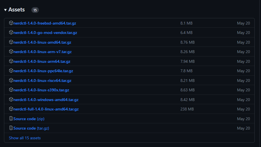 wget https://github.com/containerd/nerdctl/releases/download/v1.4.0/nerdctl-1.4.0-linux-amd64.tar.gzThis will pull down the archive package. You will need to unzip the file using:
