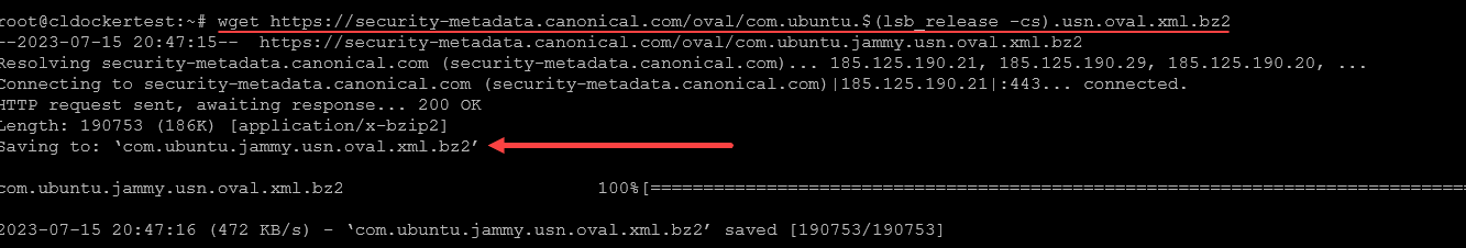 wget https://security-metadata.canonical.com/oval/com.ubuntu.$(lsb_release -cs).usn.oval.xml.bz2