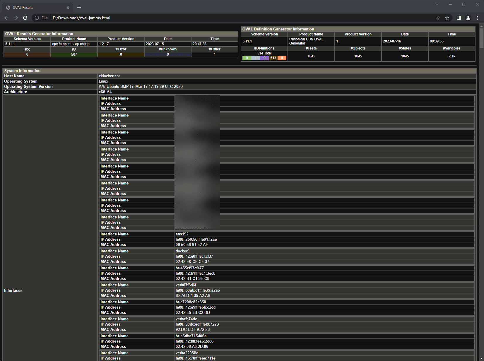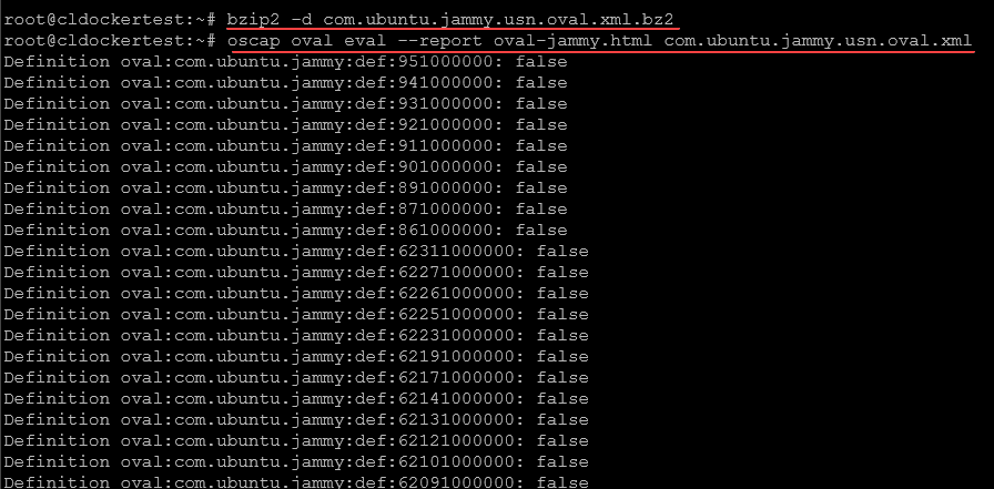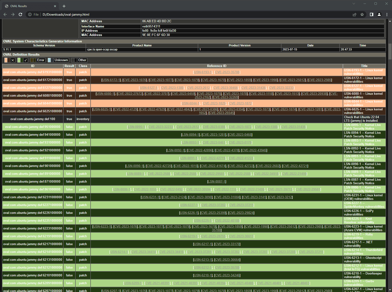 oscap oval eval --report oval-jammy.html com.ubuntu.jammy.usn.oval.xml